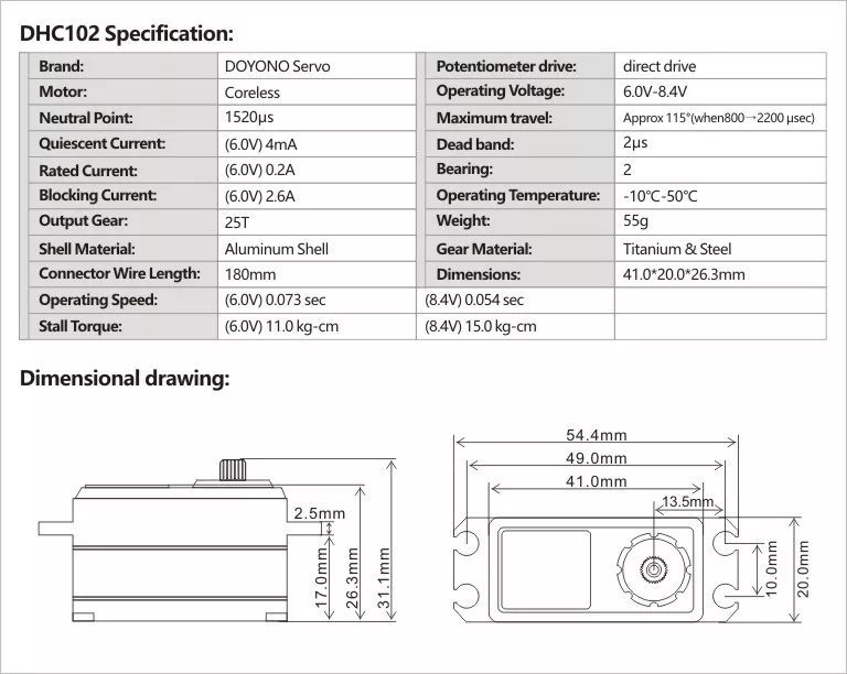 15kg ribassato Doyono SERVOCOMANDO DIGITALE HV COROLESS LOW-PROFILE SPLASHPROOF 25T