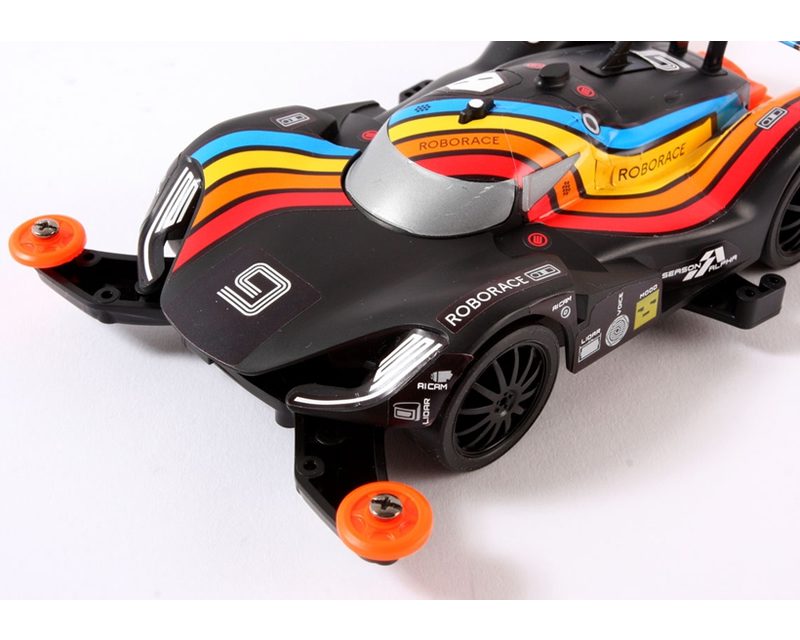 La Roborace e’ un nuovo tipo di gare sviluppate per testare la guida autonoma nelle competizioni. Il modello utilizza il telaio MA delle Mini4WD Pro. Telaio ABS Nero e parti “A” Arancio fluorescente, cerchi e gomme Nere. Decal per 4 livree.