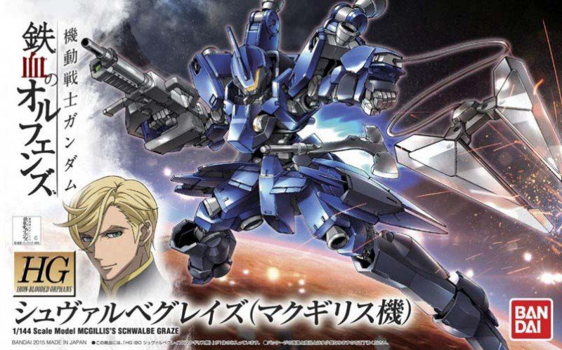 The HG Iron-Blooded Orphans 003 Mcgillis s Schwalbe Graze prodotto da Bandai in kit di montaggio in scala 1/144, è classificato in Anime / Movie Models – Gundam – HG – High Grade