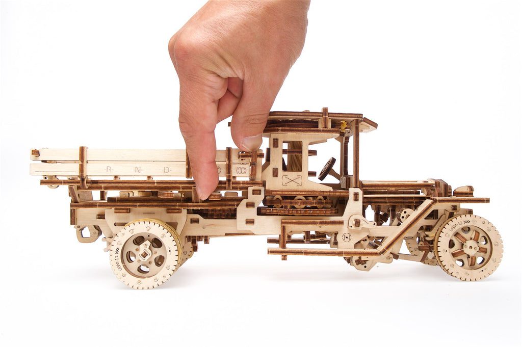 Il Camion UGM-11 rappresenta la nuova generazione dei nostri modelli meccanici. Questo è un modello che potrebbe richiedere più di un’ora per essere completato, ma il risultato merita assolutamente lo sforzo, per gli appassionati di meccanica.
