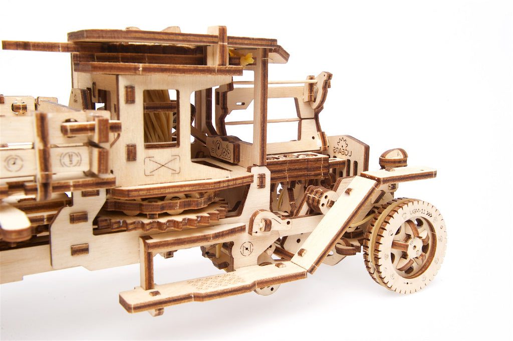 Il modello è equipaggiato con un motore a quattro cilindri, azionato da un albero motore, il quale, a sua volta, è azionato da un albero di trasmissione completamente funzionante, messo in moto da un motore a elastico tramite un sistema di ingranaggi. Il Camion è ciò che chiamiamo 100% Rubberpunk, ovvero una miscela perfetta del mondo degli ingranaggi e Steampunk.