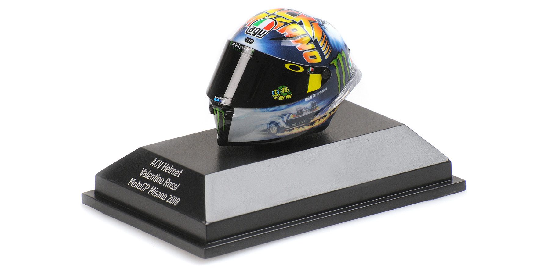 MODELLINO MINICHAMPS MONTATO E VERNICIATO IN METALLO CASCO AGV VALENTINO ROSSI MOTOGP MISANO 2018 SCALA 1/8