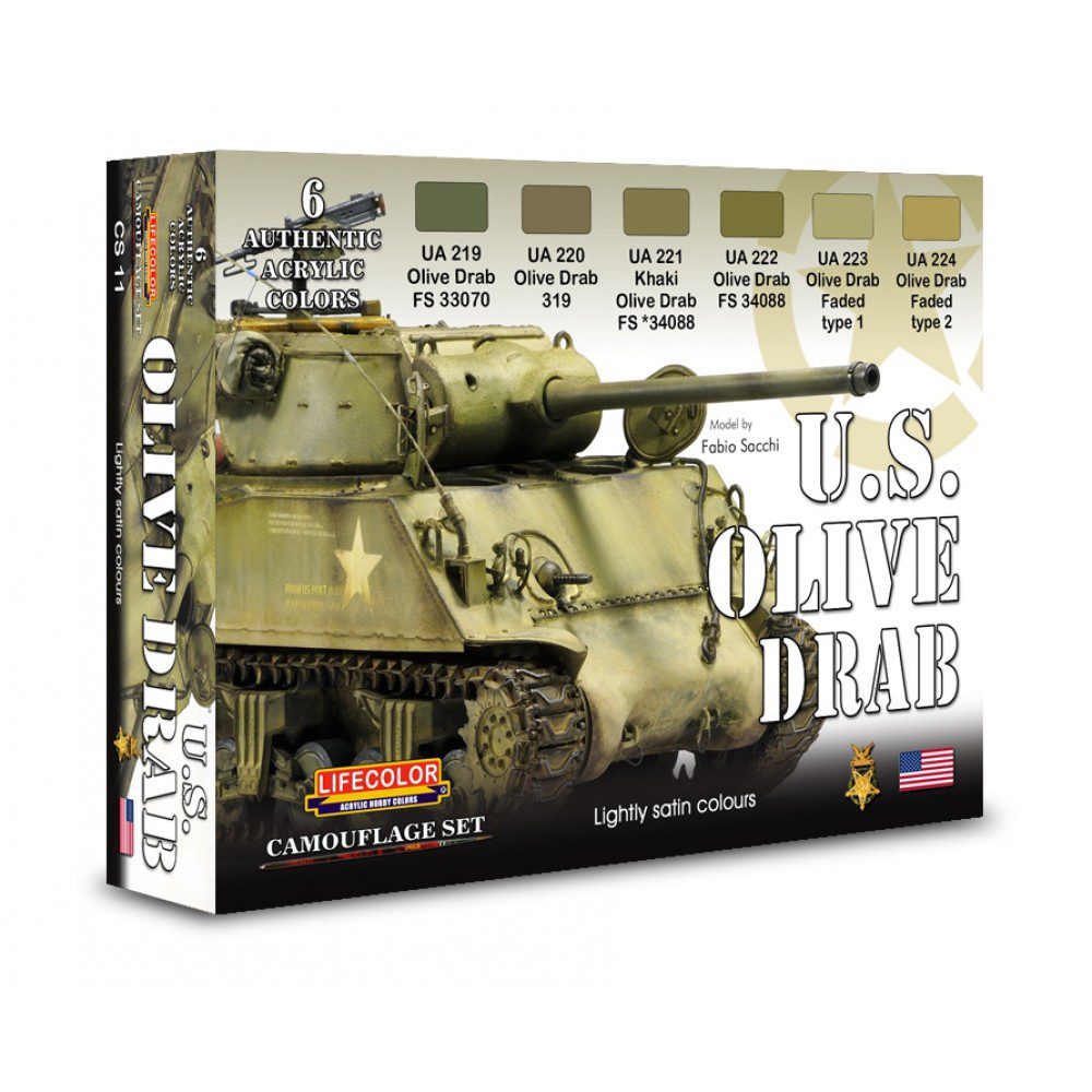 Set 6x colori acrilici Lifecolor 22ml per veicoli militari americani: US Olive Drab CS011