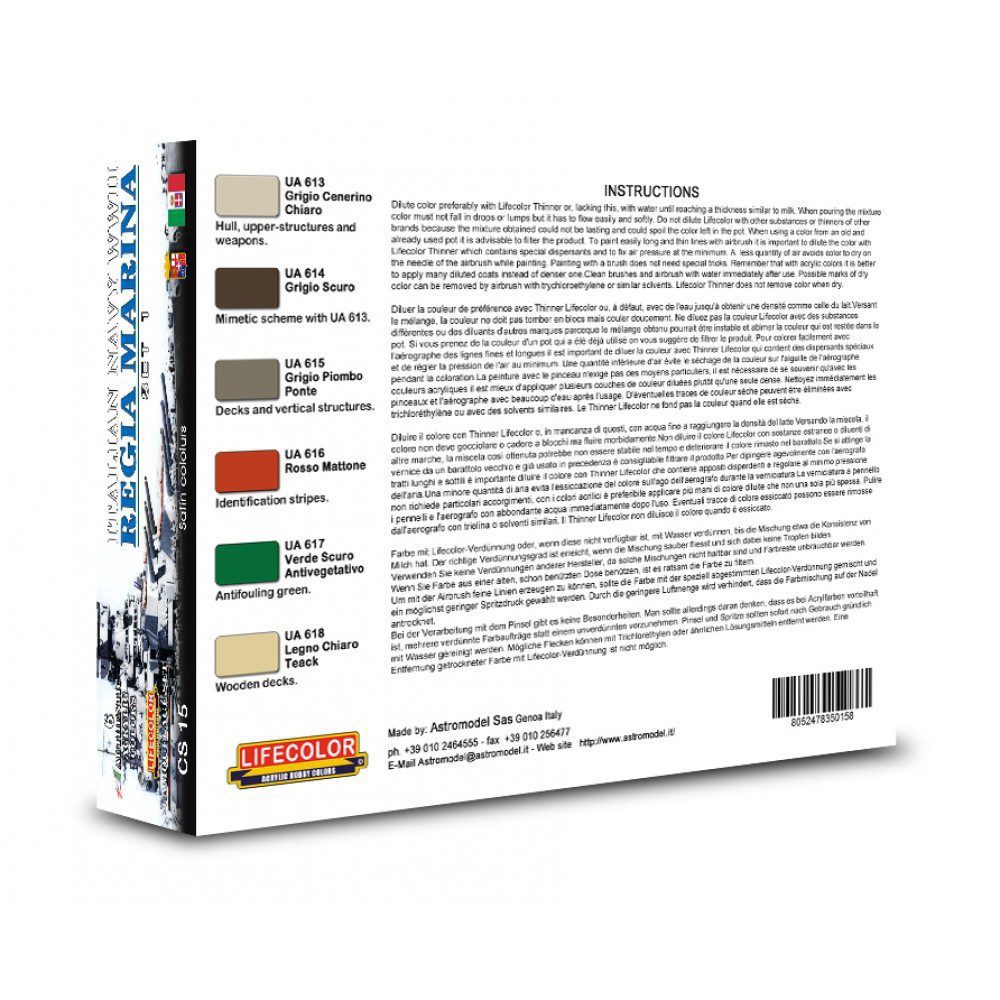 Set 6x colori acrilici Lifecolor 22ml per navi Italiane: Regia Marina Italiana Set #1 CS15