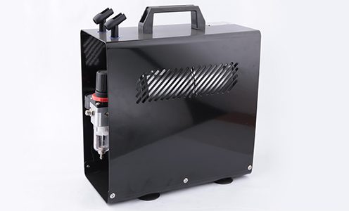 Compressore professionale da studio con motore singolo e serbatoio inferiore da 3 litri, raffreddamento forzato.