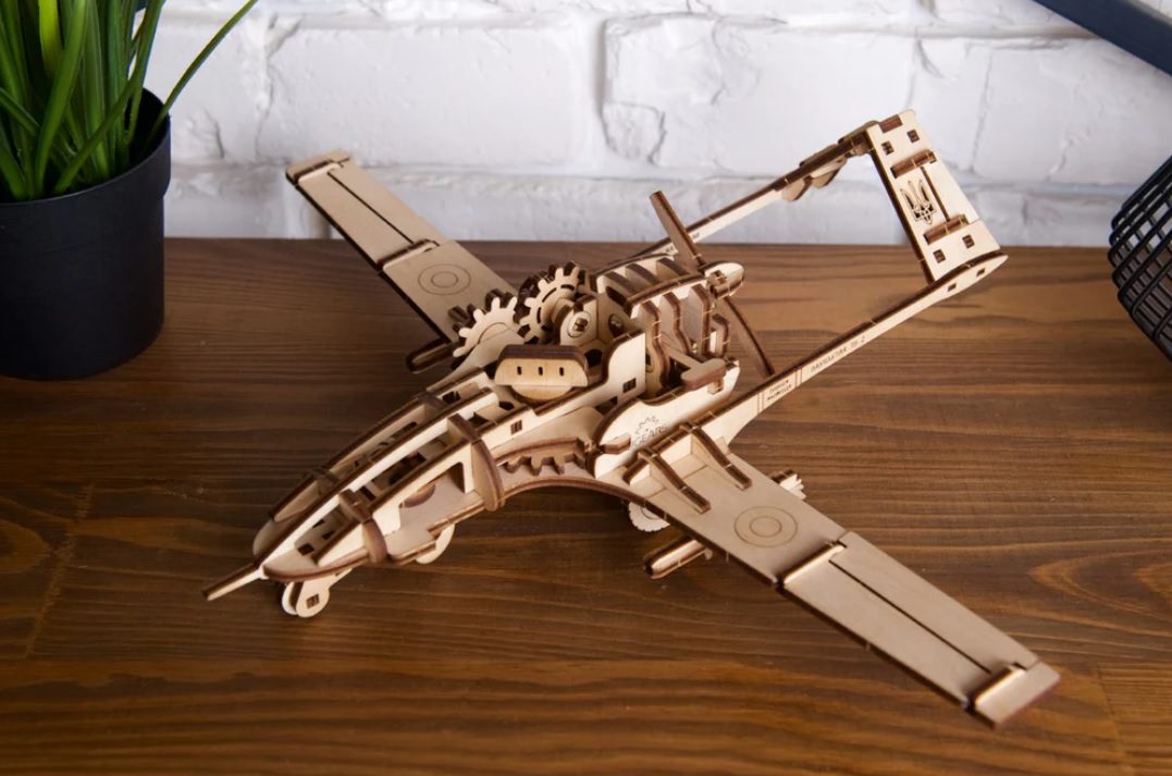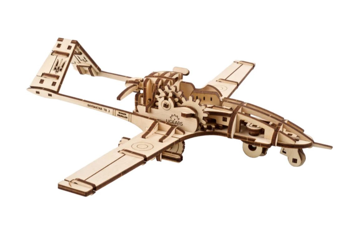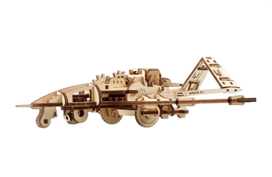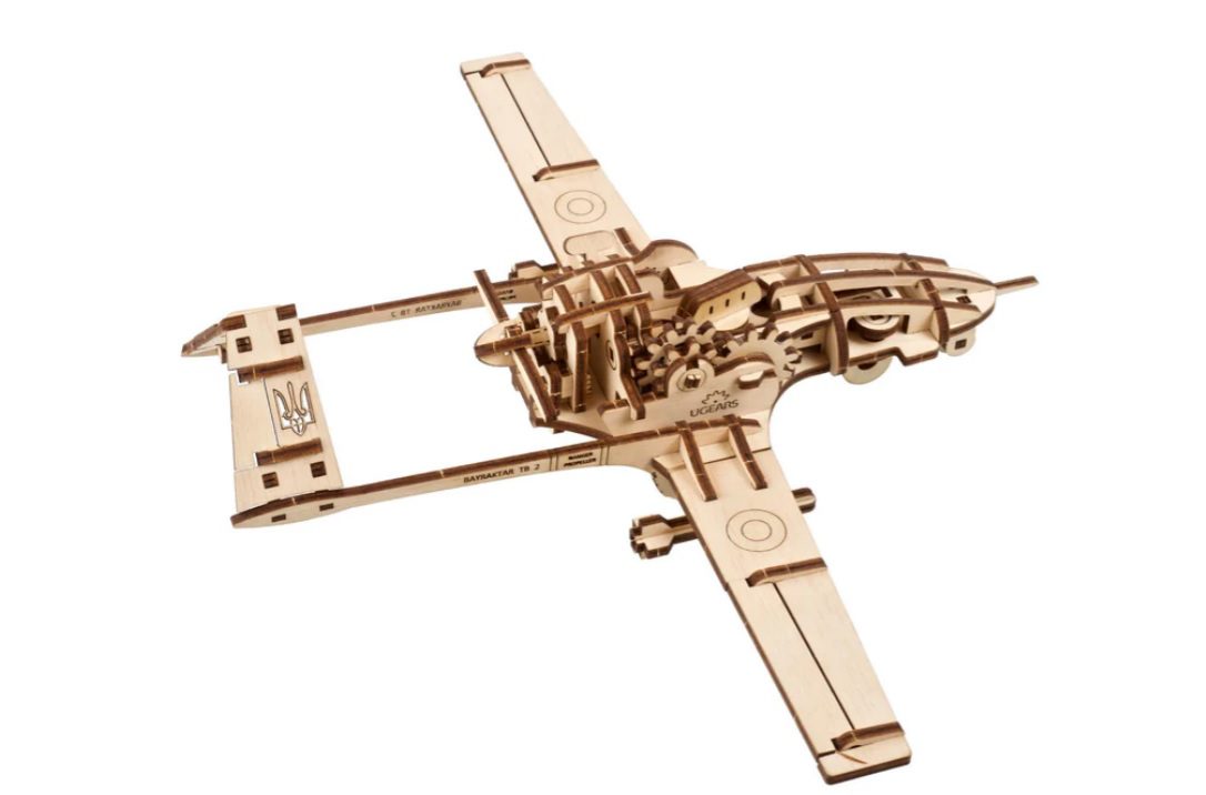 Il drone da combattimento Bayraktar TB2 è parte integrante della nuova linea di modelli ZSU di Ugears, creata per ispirare le persone in tempi difficili. Come tutta l’eccezionale linea di puzzle 3D, kit di modelli fai da te, automi, robot, scatole di puzzle in legno e kit di modelli STEM Lab di Ugears, il drone da combattimento Bayraktar TB2 si assembla senza bisogno di colla o strumenti speciali. È sufficiente staccare i pezzi dalle tavole pretagliate al laser e assemblarli seguendo le nostre istruzioni illustrate passo per passo in 11 lingue (inglese, ucraino, tedesco, spagnolo, francese, italiano, turco, polacco, giapponese, cinese e coreano).