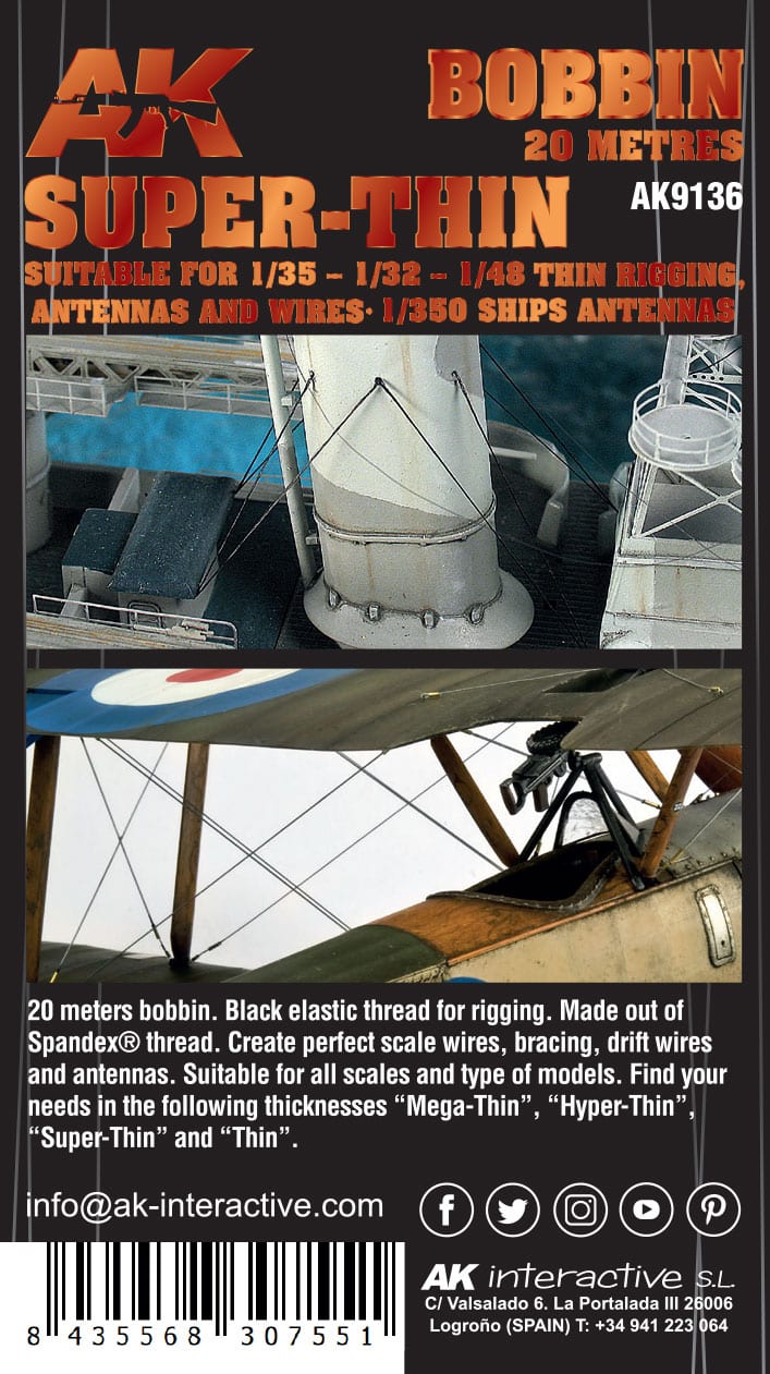 ELASTIC RIGGING BOBBIN SUPER-THIN (SUITABLE FOR 1:35 / 1:32 / 1:48 / 1:350) AK INTERACTIVE AK9136