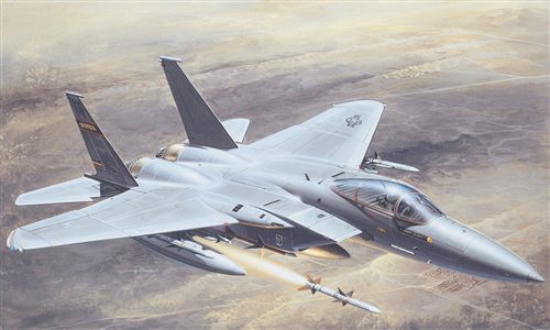 modellino 1/48 F-15 Eagle e’ il caccia standard dell’Aviazione Americana dalla fine degli anni 70, quando inizio’ progressivamente a sostituire il famoso F-4 Phantom. L’Eagle e’ un grosso bireattore caratterizzato da unampia superficie alare che gli assicura una grande stabilita’ e manovrabilita’, unitamente ad elevate doti di velocita’ che hanno consentito a questo velivolo di essere il miglior caccia del passato ventennio. L’F-15 dispone inoltre di una ottima dotazione elettronica che gli consente l’utilizzo del proprio armamento missilistico al meglio. Impiegato dall’Aviazione Americana ed Israeliana nei conflitti recenti ha dimostrato una ampia superiorita’ su tutti i velivoli avversari incontrati compresi i più recenti MIG-29.