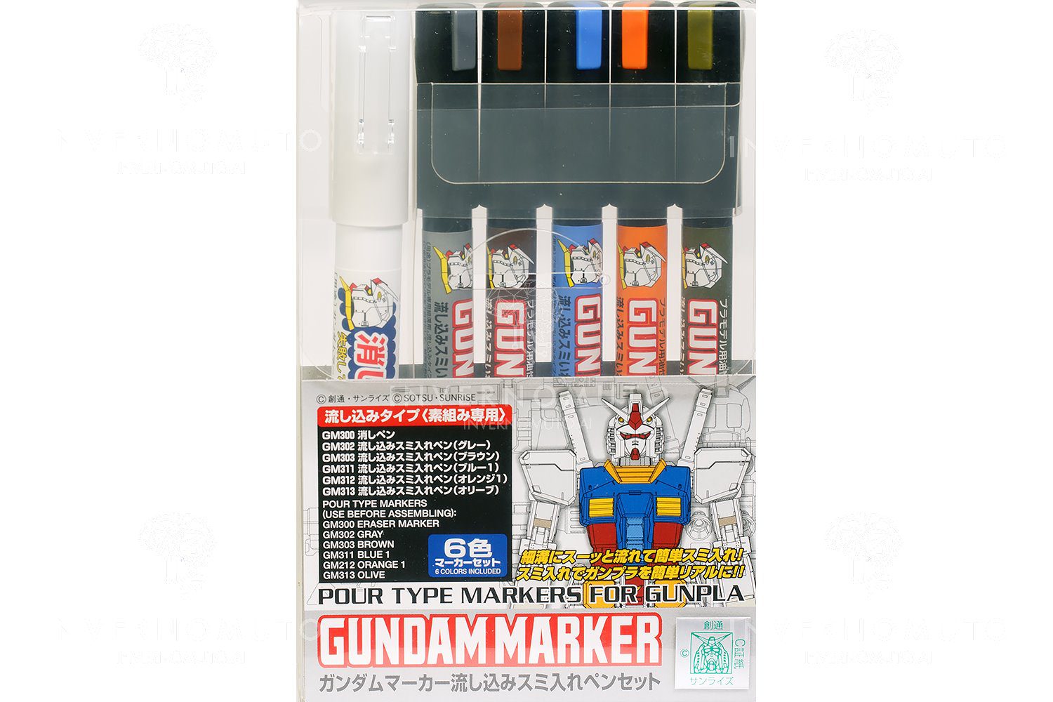 L’inchiostro dei pennarelli colorati è a base alcolica e permanente. Asciuga rapidamente, è particolarmente indicato per la plastica dei gunpla e non la danneggia in alcun modo.