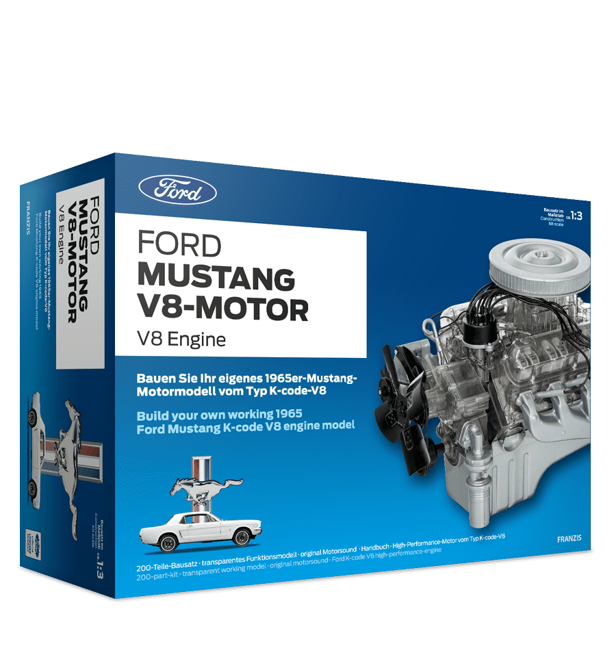 La produzione in serie della prima generazione della Ford Mustang iniziò all’inizio degli anni ’60. Da allora, la “pony car” è stata l’epitome dell’automobile sportiva americana. Quasi indissolubilmente legato alla storia della Mustang è il suo motore V8. Questo kit dettagliato in scala 1: 3 offre agli appassionati di auto una visione affascinante della funzione e della tecnologia di questo motore.