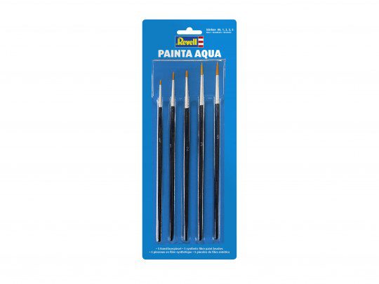 5 pennelli in fibra sintetica di alta qualità, forza 00, 1, 2, 3, 5 I pennelli robusti e di alta qualità sono stati sviluppati appositamente per le vernici Aqua Color e consentono un’applicazione della vernice particolarmente uniforme.