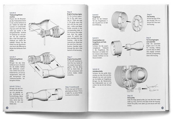 L’ampio libro di accompagnamento offre molte conoscenze sui motori a reazione e sugli aerei. La funzionalità tecnica e la storia dello sviluppo dalle prime turbine agli odierni motori ad alte prestazioni dei moderni jet jet sono chiaramente illustrate.