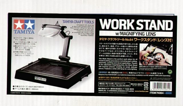 Devi sforzare gli occhi quando lavori su quei dettagli fini? Hai sempre un’area di lavoro disordinata e hai bisogno di più spazio con cui lavorare? Vuoi un banco da lavoro compatto che possa essere facilmente trasportato ovunque tu vada? Se hai risposto sì a una di queste domande, Tamiya ha il prodotto perfetto per te, il supporto da lavoro Tamiya con lente di ingrandimento! Dotato di una grande lente d’ingrandimento in acrilico con ingrandimento 2X , vedrai tutti quei piccoli dettagli molto più chiari, rendendo facile lavorare per lunghe ore sul tuo modello preferito. Per assicurarti di avere sempre un’illuminazione perfetta nel luogo in cui ne hai più bisogno, 6 lampade a LED bianchesono installati appena dietro la lente d’ingrandimento. Alimentato da 4 batterie F20 / D / UM1 avrai più di 150 ore di luce bianca perfetta.